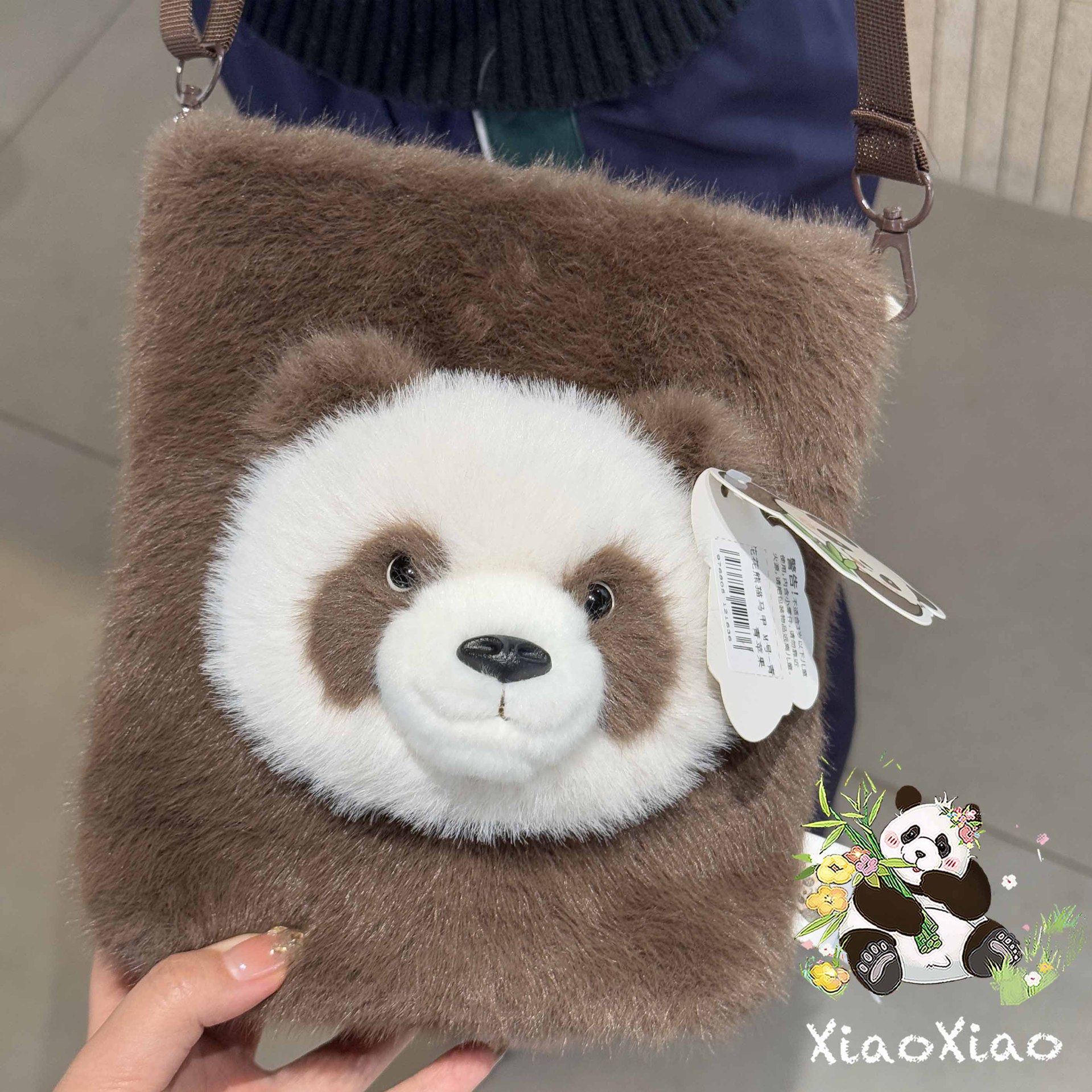New Cartoon-Style Qizai Panda Fashion Plush Small Square Bag - 2-in-1 Crossbody Bag & Handbag