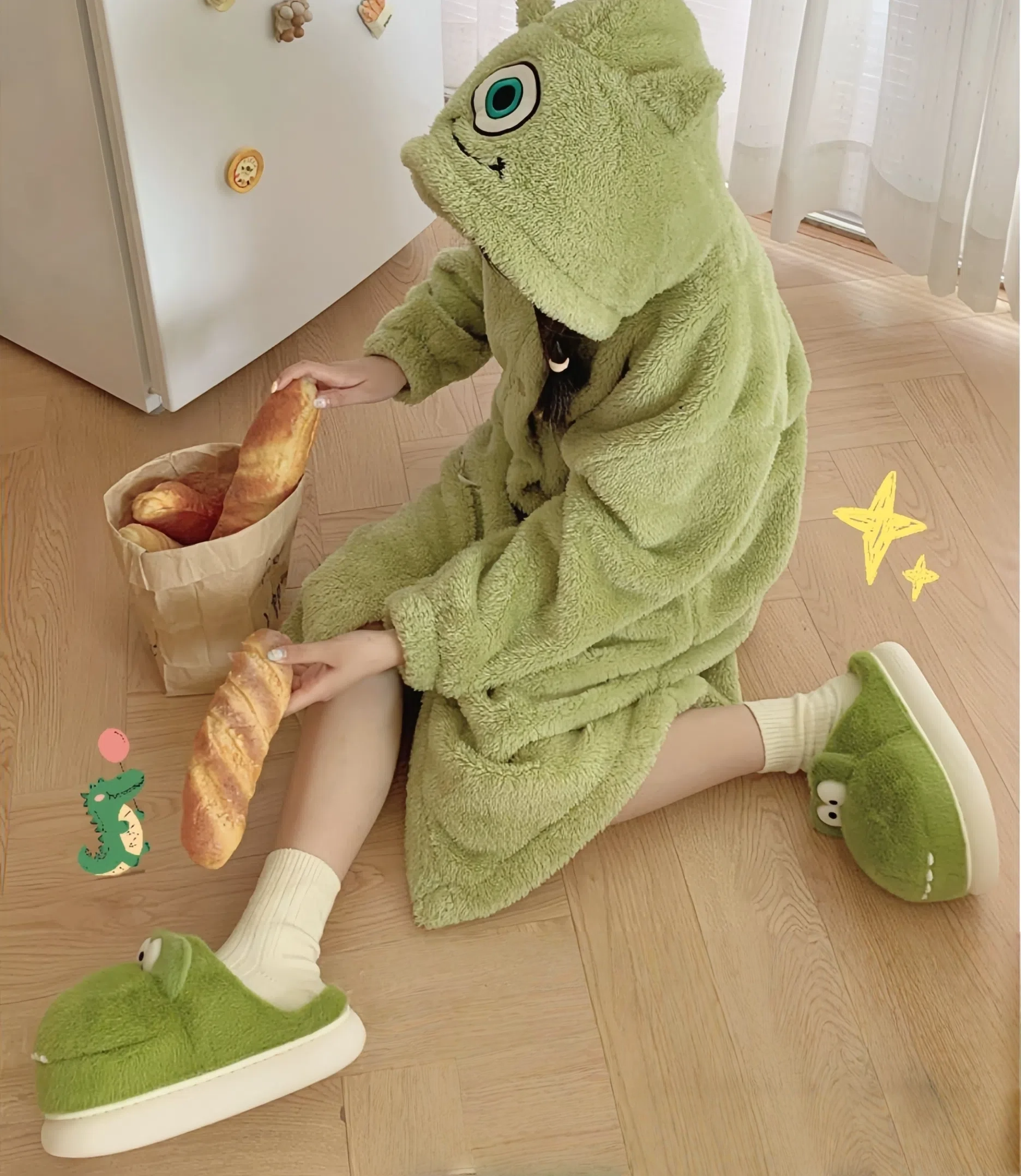 Fashionable New Style Fun & Whimsical Crocodile Plush Warm Cotton Slippers - For Autumn & Winter Indoor Home Use, Lined with Fleece